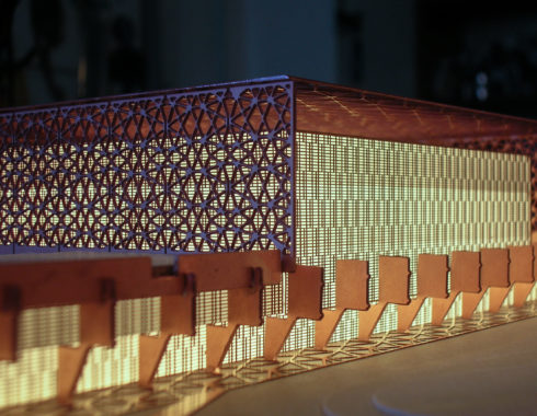 Noble Qu'ran Oasis Mauro Galantino, Daniele De Bettin, Paolo La Rosa, DBA progettiThe Noble Qu'ran Oasis competition scala | scale 1:500 Bronzo, betulla avio, plexiglass, illuminazione | Brass, birch, plexiglass, lights Condividi questo progetto